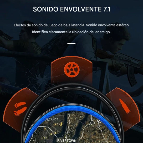 Lleva tu experiencia de juego al siguiente nivel con los auriculares gamer G58/G60, diseñados para ofrecer un sonido envolvente 7.1 de alta calidad que te sumerge en cada partida. Gracias a su tecnología de audio virtual, podrás detectar con precisión cada detalle: desde pasos sigilosos hasta explosiones intensas.